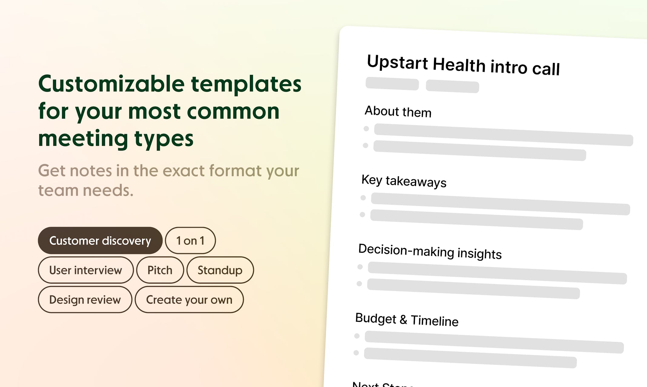 Get notes in the exact format your team needs.
