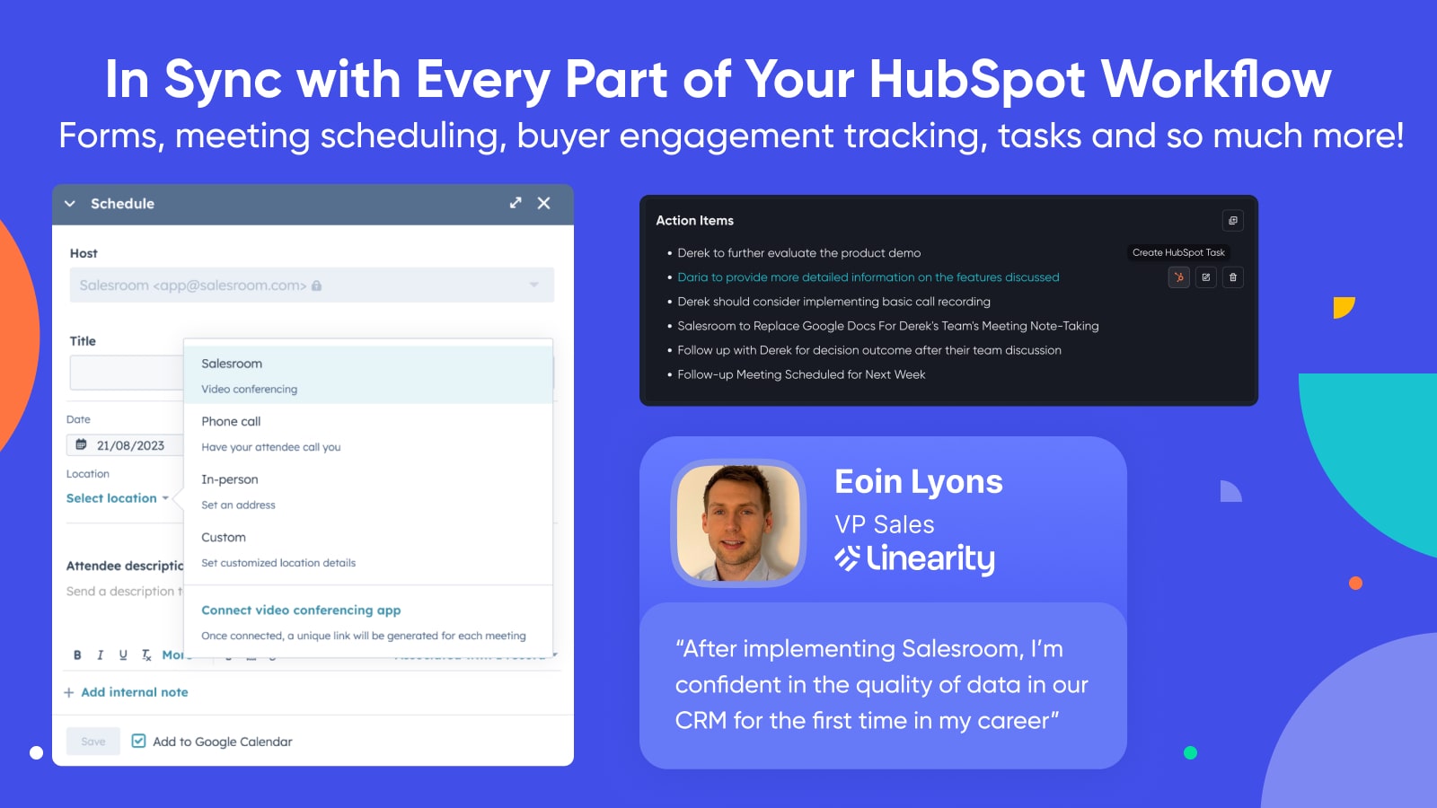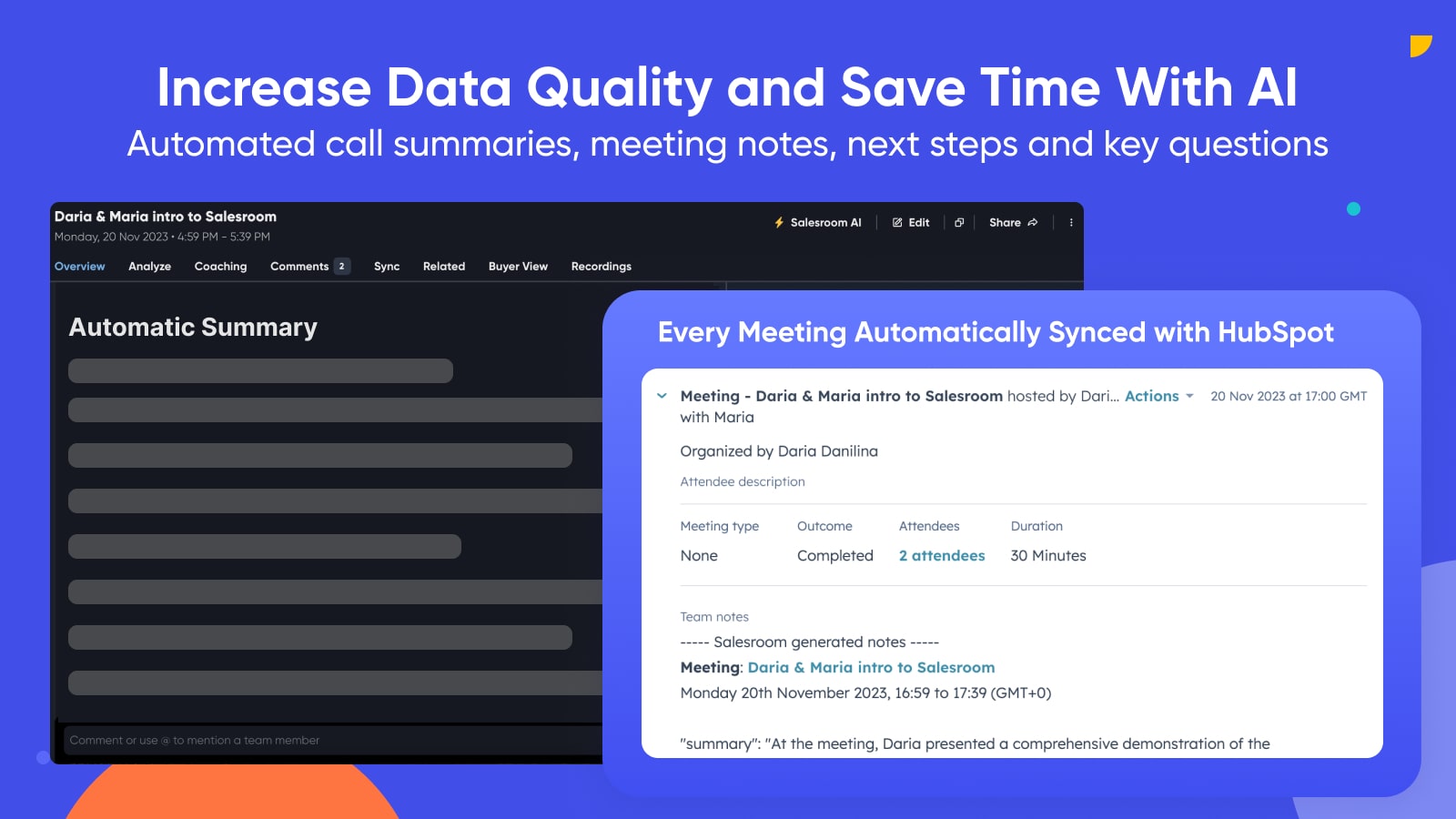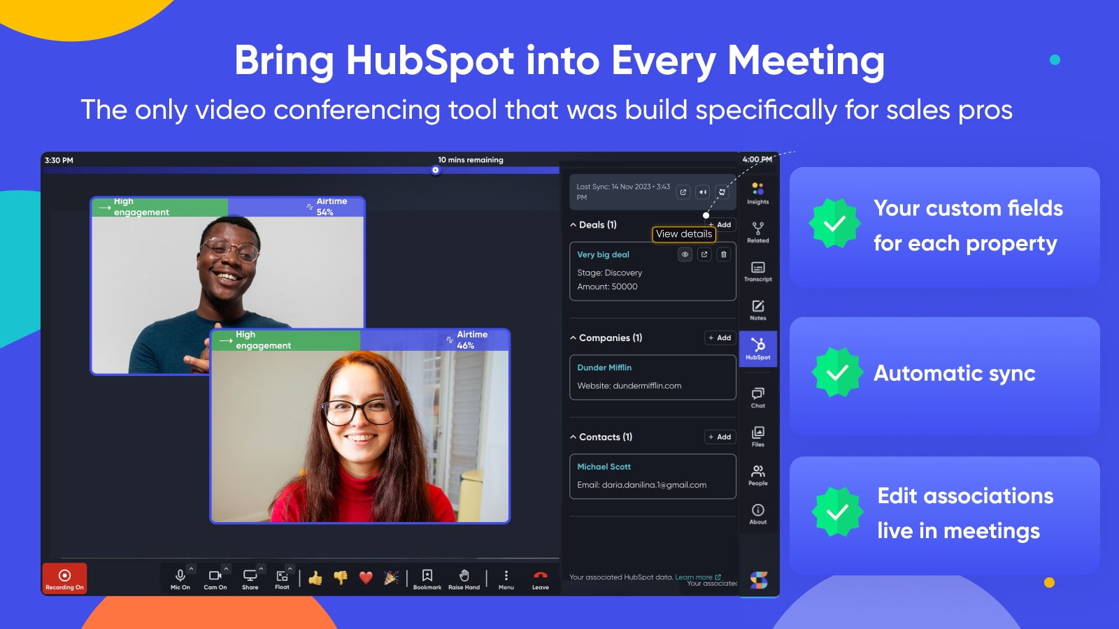 - Enhance HubSpot CRM with accurate meeting insights for improved reporting.